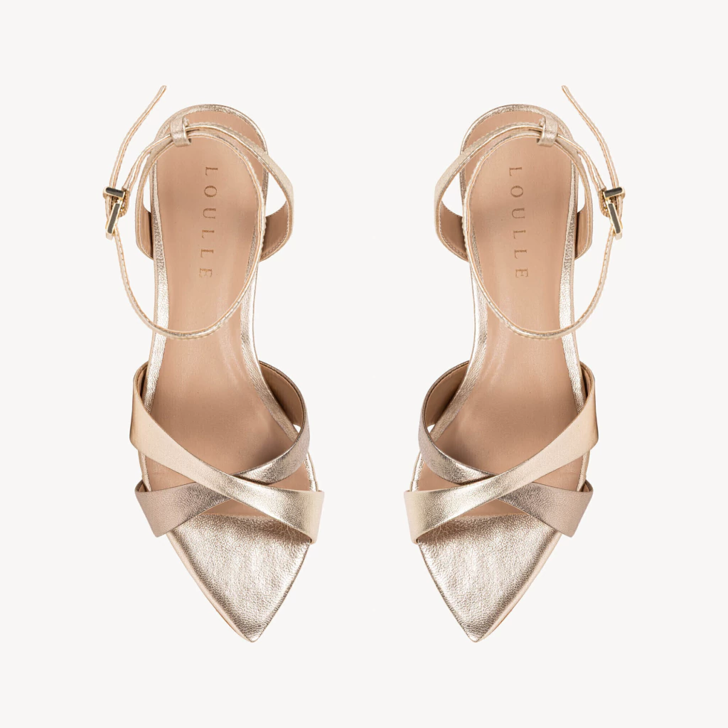 O design é marcado pelo nosso inconfundível DNA Bico Folha, que alonga a silhueta e é um verdadeiro símbolo de elegância atemporal da LOULLE. As tiras delicadas que se cruzam na frente e envolvem o tornozelo de forma sensual adicionam um toque de feminilidade e sofisticação, garantindo um calce seguro e extremamente charmoso.