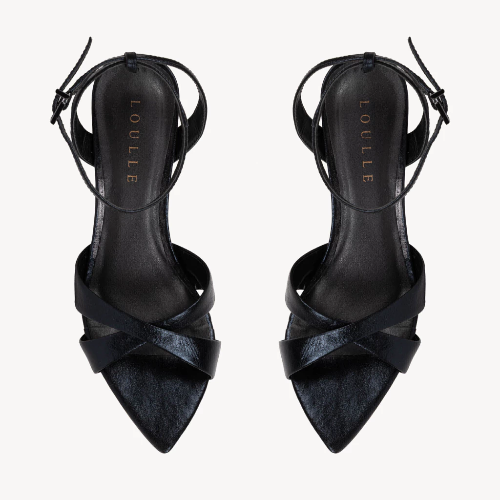 O design é marcado pelo nosso inconfundível DNA Bico Folha, que alonga a silhueta e é um verdadeiro símbolo de elegância atemporal da LOULLE. As tiras delicadas que se cruzam na frente e envolvem o tornozelo de forma sensual adicionam um toque de feminilidade e sofisticação, garantindo um calce seguro e extremamente charmoso.